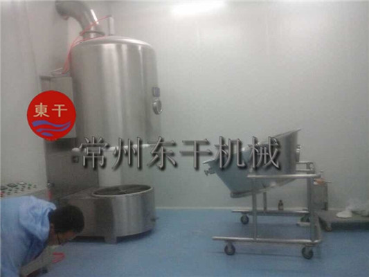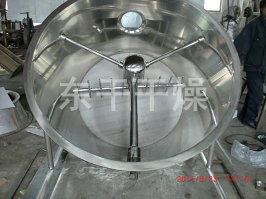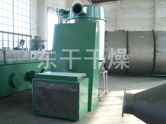 空氣經(jīng)加熱凈化后,由引風(fēng)機(jī)從下部導(dǎo)入,穿過(guò)料斗的孔網(wǎng)板。在工作室內(nèi),經(jīng)攪拌和負(fù)壓作用形成流態(tài)化,水份快速蒸發(fā)后隨著排氣帶走,物料快速干燥。